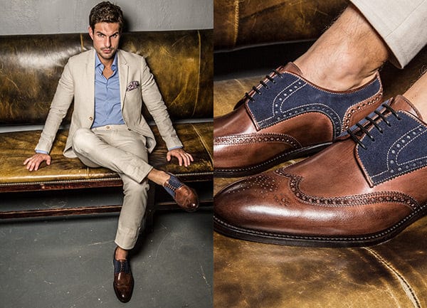 The wingtip brown antique & blue suede is an ideal choice for business wear. Our unique design can handle every day use and resist wear and tear.