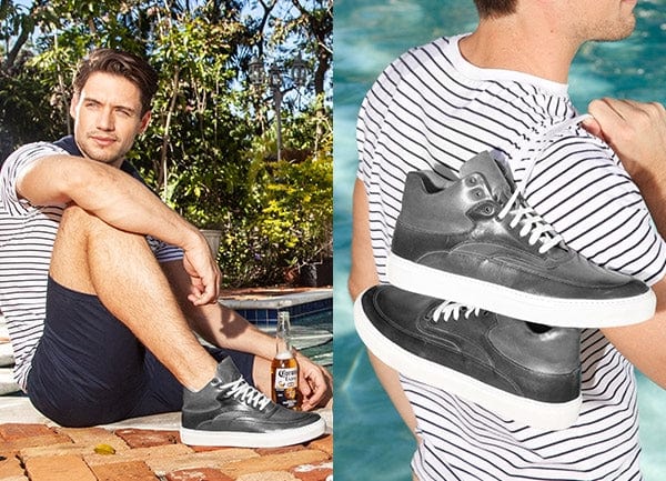 Maximo High top dress sneakers in Black and Grey Smoke. The Maximo High Top Dress Sneakers in Black and Grey Smoke are beyond effortlessly cool. Hand-made from high-quality Italian leather, they are hand-dyed and hand burnished. Like our dress shoes, fourth generation Italian artisans have created this edgy luxury sneaker.