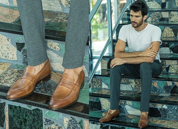 Cognac penny loafer Italian leather dress shoes. The Greg penny loafer dress shoes in Cognac Antique is crafted from Italian leather with a luxurious texture and elegant shape. All Ace Marks shoes benefit from a durable blake flex construction with hard-wearing leather soles. With a comfortable slip-on design, this model adds a touch of class to any outfit inside and outside of the office. The Penny Loafer Greg Cognac Antique has a leather upper panel detail and the classic penny loafer design. It exudes smart style and effortless sophistication. All Ace Marks models are shipped without charge to the United States and are eligible for our Buyback program.